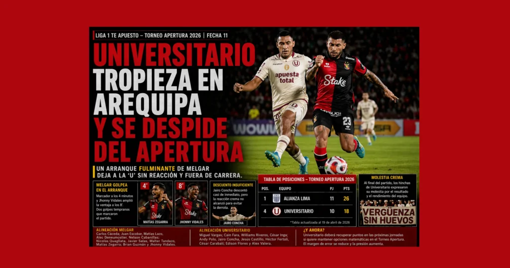 Política “Plan Morrocoy”: López Aliaga agita fantasma de fraude y cuestiona a ONPE y JNE 19 de abril de 2026 Fútbol Alianza Lima arrasa: aplasta 8-0 a Cusco FC y toma la cima 18 de abril de 2026 Fútbol Choque tenso en Huancayo: urgencias y puntos en juego 18 de abril de 2026 Fútbol Con Cueva en foco: Juan Pablo II busca frenar a Comerciantes 18 de abril de 2026 Fútbol Cajamarca vs ADT: dos equipos en crisis buscan aire en la fecha 11 18 de abril de 2026 Fútbol Los Chankas no sueltan la cima: golpean a Grau y siguen intratables (VIDEO) 18 de abril de 2026 Política “Plan Morrocoy”: López Aliaga agita fantasma de fraude y cuestiona a ONPE y JNE 19 de abril de 2026 Fútbol Alianza Lima arrasa: aplasta 8-0 a Cusco FC y toma la cima 18 de abril de 2026 Fútbol Choque tenso en Huancayo: urgencias y puntos en juego 18 de abril de 2026 Fútbol Con Cueva en foco: Juan Pablo II busca frenar a Comerciantes 18 de abril de 2026 Fútbol Cajamarca vs ADT: dos equipos en crisis buscan aire en la fecha 11 18 de abril de 2026 Fútbol Los Chankas no sueltan la cima: golpean a Grau y siguen intratables (VIDEO) 18 de abril de 2026 Política “Plan Morrocoy”: López Aliaga agita fantasma de fraude y cuestiona a ONPE y JNEFujimori se desmarca de López Aliaga y rechaza llamados a la insurgenciaDenuncian a López Aliaga por presunta incitación a la insurgencia electoralMisión de la OEA respalda elecciones en Perú pese a fallas logísticas Fútbol Alianza Lima arrasa: aplasta 8-0 a Cusco FC y toma la cimaChoque tenso en Huancayo: urgencias y puntos en juegoCon Cueva en foco: Juan Pablo II busca frenar a ComerciantesCajamarca vs ADT: dos equipos en crisis buscan aire en la fecha 11 Mundo El Papa arremete contra “tiranos” y desata choque frontal con TrumpBombardeos en Líbano dejan más de 100 muertos y agravan conflictoIrán golpea en el aire: derribo de aviones sacude a EE.UU.Trabajar ya no alcanza: crece la pobreza entre empleados en Argentina Entradas Política “Plan Morrocoy”: López Aliaga agita fantasma de fraude y cuestiona a ONPE y JNE Fútbol Alianza Lima arrasa: aplasta 8-0 a Cusco FC y toma la cima Fútbol Choque tenso en Huancayo: urgencias y puntos en juego Fútbol Con Cueva en foco: Juan Pablo II busca frenar a Comerciantes Fútbol Cajamarca vs ADT: dos equipos en crisis buscan aire en la fecha 11 Descargar versión digital Salud Sedentarismo se dispara en Perú: 1 de cada 4 no hace ejercicioMaternidad en riesgo: Perú reduce mortalidad materna, pero persisten brechas en atención primariaVerano intenso: especialistas recomiendan frutas y verduras para prevenir golpes de calor (VIDEO)Saunas y baños fríos: beneficios reales y límites según la evidencia científica Cultura Artemis II capta eclipse solar y “puesta de Tierra” en sobrevuelo lunarLos países más seguros para mujeres que viajan solas: tendencias y destinos claveEl Ave María: la oración sencilla que dominó siglos de feTumbes en enero: clima, biodiversidad y gastronomía impulsan su atractivo turístico (VIDEO) Editorial EL PERÚ LES INTERESA UN COMINODESMONTANDO LA MÁQUINA Economía Mercado del aceite de oliva en Perú crece pese al fuerte aumento de preciosPromesa de matrimonio incumplida no debe derivar en conflictos judicialesInnovar o quedarse atrás: el nuevo desafío del sector inmobiliario peruanoMinería y agro empujan al Perú: Exportaciones del Perú rompen récord y superan los US$ 90 mil millones en 2025 Pataditas ONPE habilita plataforma oficial con resultados en tiempo real de Elecciones 2026López Aliaga retrocede y borra oferta de S/20 mil en plena tensión electoral¿Cuándo será la segunda vuelta presidencial en Perú?Chino mudo-2 Informes Especiales 'PANAMA PAPERS' CERCAN A LOPEZ ALIAGAACUÑA EN LA MIRA DE TRUMPLópez Aliaga agita el fantasma del fraude sin pruebasUNICEF advierte: más de 100 niños habrían fallecido en Gaza desde el alto el fuego Videos Alianza Lima arrasa: aplasta 8-0 a Cusco FC y toma la cimaLos Chankas no sueltan la cima: golpean a Grau y siguen intratables (VIDEO)Melgar despierta con goleada, corta su mala racha y hunde a Sport Boys (VIDEO)Alianza golpea en la altura y vuelve a la cima del torneo (VIDEO) Fotos “Plan Morrocoy”: López Aliaga agita fantasma de fraude y cuestiona a ONPE y JNEChoque tenso en Huancayo: urgencias y puntos en juegoCon Cueva en foco: Juan Pablo II busca frenar a ComerciantesONPE habilita plataforma oficial con resultados en tiempo real de Elecciones 2026