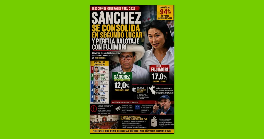 Fútbol Sin público y con tensión: Cristal se juega mucho en Sullana 22 de abril de 2026 Fútbol Cutervo arde: Comerciantes y Alianza Atlético juegan con el agua al cuello 22 de abril de 2026 Política Campaña al borde del abismo: López Aliaga agita la contienda con denuncias sin sustento 22 de abril de 2026 Política Golpe a la institucionalidad: renuncia el jefe de la ONPE tras fallas logísticas 21 de abril de 2026 Economía Economía peruana en “modo zombi” por crisis política persistente 21 de abril de 2026 Mundo ¿Trump involucrado en uso de información privilegiada? Millones en juego antes de cada declaración 20 de abril de 2026 Fútbol Sin público y con tensión: Cristal se juega mucho en Sullana 22 de abril de 2026 Fútbol Cutervo arde: Comerciantes y Alianza Atlético juegan con el agua al cuello 22 de abril de 2026 Política Campaña al borde del abismo: López Aliaga agita la contienda con denuncias sin sustento 22 de abril de 2026 Política Golpe a la institucionalidad: renuncia el jefe de la ONPE tras fallas logísticas 21 de abril de 2026 Economía Economía peruana en “modo zombi” por crisis política persistente 21 de abril de 2026 Mundo ¿Trump involucrado en uso de información privilegiada? Millones en juego antes de cada declaración 20 de abril de 2026 Política Campaña al borde del abismo: López Aliaga agita la contienda con denuncias sin sustentoGolpe a la institucionalidad: renuncia el jefe de la ONPE tras fallas logísticasCorvetto contraataca: ofrece su pasaporte en plena presión fiscal“Plan Morrocoy”: López Aliaga agita fantasma de fraude y cuestiona a ONPE y JNE Fútbol Sin público y con tensión: Cristal se juega mucho en SullanaCutervo arde: Comerciantes y Alianza Atlético juegan con el agua al cuelloCienciano despierta en el segundo tiempo y liquida a Moquegua (VIDEO)Universitario tropieza en Arequipa y se despide del Apertura (VIDEO) Mundo ¿Trump involucrado en uso de información privilegiada? Millones en juego antes de cada declaraciónEl Papa arremete contra “tiranos” y desata choque frontal con TrumpBombardeos en Líbano dejan más de 100 muertos y agravan conflictoIrán golpea en el aire: derribo de aviones sacude a EE.UU. Entradas Fútbol Sin público y con tensión: Cristal se juega mucho en Sullana Fútbol Cutervo arde: Comerciantes y Alianza Atlético juegan con el agua al cuello Política Campaña al borde del abismo: López Aliaga agita la contienda con denuncias sin sustento Política Golpe a la institucionalidad: renuncia el jefe de la ONPE tras fallas logísticas Economía Economía peruana en “modo zombi” por crisis política persistente Descargar versión digital Salud Sedentarismo se dispara en Perú: 1 de cada 4 no hace ejercicioMaternidad en riesgo: Perú reduce mortalidad materna, pero persisten brechas en atención primariaVerano intenso: especialistas recomiendan frutas y verduras para prevenir golpes de calor (VIDEO)Saunas y baños fríos: beneficios reales y límites según la evidencia científica Cultura Artemis II capta eclipse solar y “puesta de Tierra” en sobrevuelo lunarLos países más seguros para mujeres que viajan solas: tendencias y destinos claveEl Ave María: la oración sencilla que dominó siglos de feTumbes en enero: clima, biodiversidad y gastronomía impulsan su atractivo turístico (VIDEO) Editorial EL PERÚ LES INTERESA UN COMINODESMONTANDO LA MÁQUINA Economía Economía peruana en “modo zombi” por crisis política persistenteMercado del aceite de oliva en Perú crece pese al fuerte aumento de preciosPromesa de matrimonio incumplida no debe derivar en conflictos judicialesInnovar o quedarse atrás: el nuevo desafío del sector inmobiliario peruano Pataditas ONPE habilita plataforma oficial con resultados en tiempo real de Elecciones 2026López Aliaga retrocede y borra oferta de S/20 mil en plena tensión electoral¿Cuándo será la segunda vuelta presidencial en Perú?Chino mudo-2 Informes Especiales 'PANAMA PAPERS' CERCAN A LOPEZ ALIAGAACUÑA EN LA MIRA DE TRUMPLópez Aliaga agita el fantasma del fraude sin pruebasUNICEF advierte: más de 100 niños habrían fallecido en Gaza desde el alto el fuego Videos Cienciano despierta en el segundo tiempo y liquida a Moquegua (VIDEO)Universitario tropieza en Arequipa y se despide del Apertura (VIDEO)Del desorden al golpe final: Boys gana entre peleas y tarjetas rojas (VIDEO)Cristal gana pero no convence: victoria con sabor a advertencia (VIDEO) Fotos Sin público y con tensión: Cristal se juega mucho en SullanaCutervo arde: Comerciantes y Alianza Atlético juegan con el agua al cuelloCampaña al borde del abismo: López Aliaga agita la contienda con denuncias sin sustentoGolpe a la institucionalidad: renuncia el jefe de la ONPE tras fallas logísticas