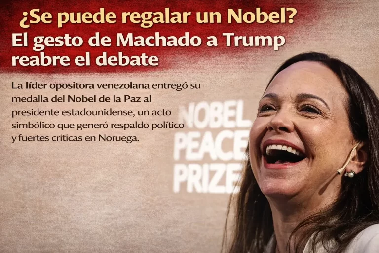 La líder opositora venezolana entregó su medalla del Nobel de la Paz…