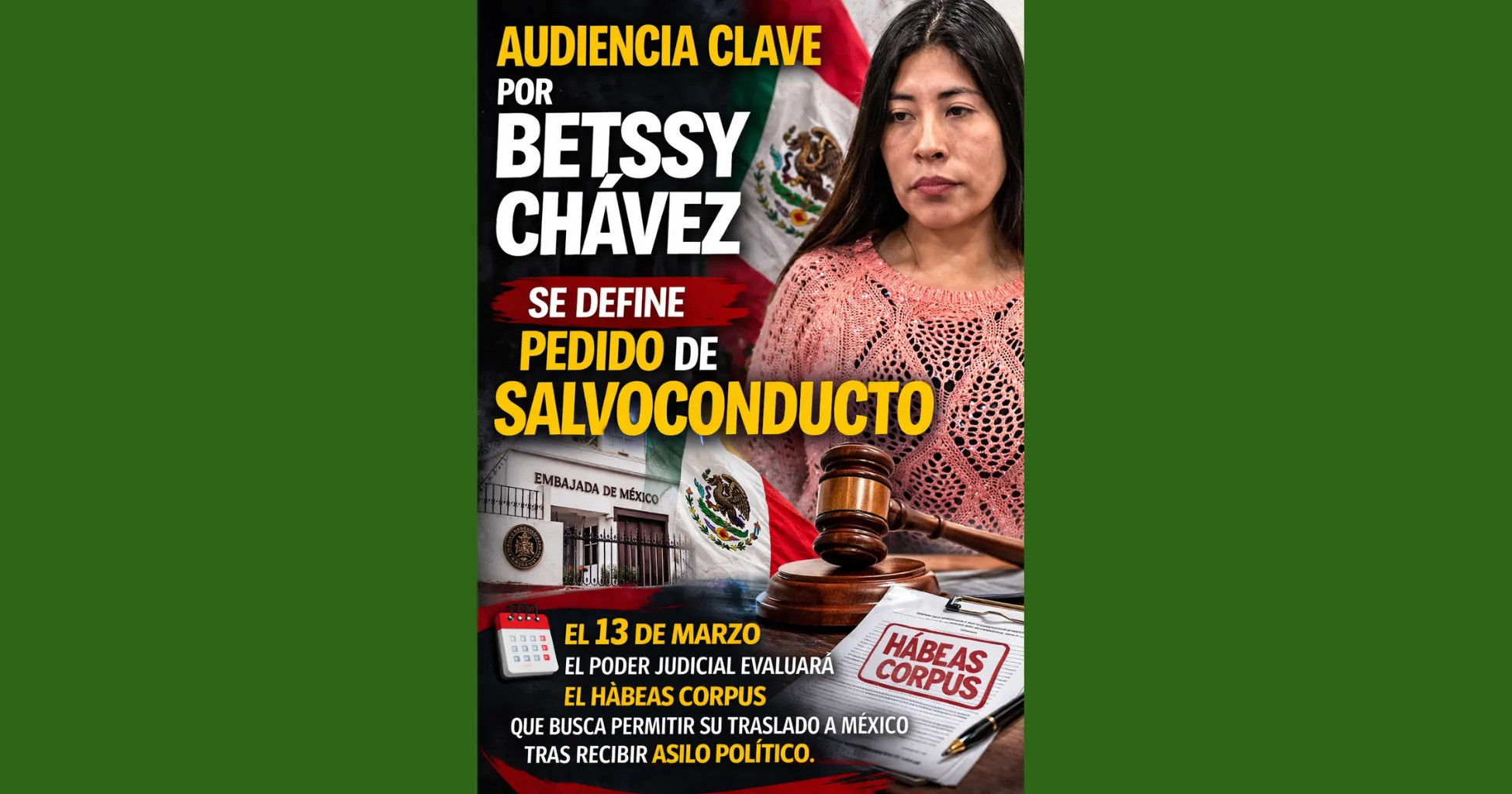 El Décimo Juzgado Constitucional de Lima evaluará el 13 de marzo de 2026 una demanda de hábeas corpus presentada a favor de Betssy Chávez, con el objetivo de que el Estado peruano otorgue un salvoconducto que le permita viajar a México como asilada política. La ex presidenta del Consejo de Ministros permanece en la embajada mexicana en Lima desde el 3 de noviembre de 2025, tras ser condenada por su participación en el intento de golpe de Estado del 7 de diciembre de 2022.