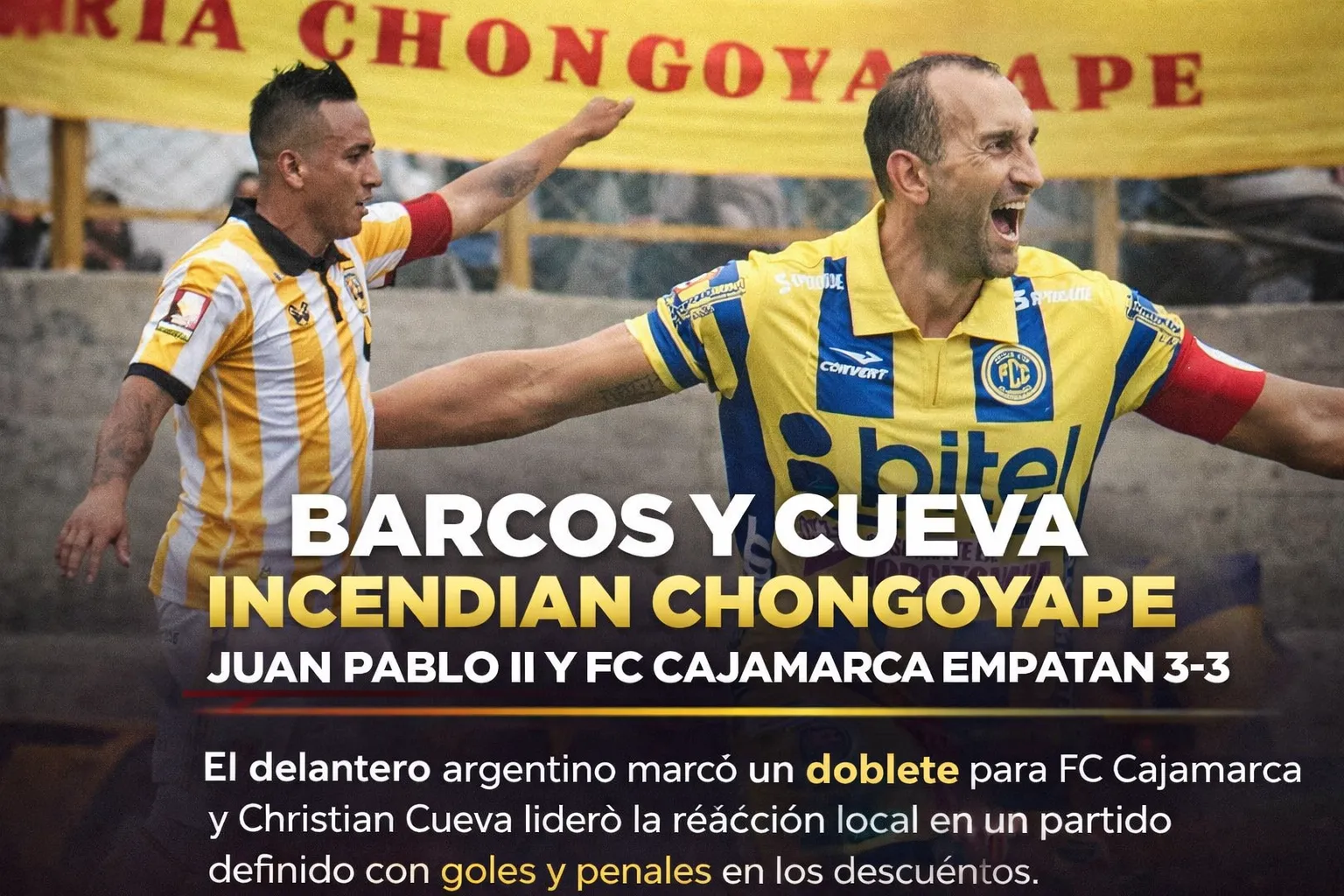 El encuentro concentró una atención especial desde la previa. Por un lado, el regreso de Christian Cueva al fútbol peruano, esta vez como referente del proyecto deportivo de Juan Pablo II; por otro, el estreno de Hernán Barcos con FC Cajamarca tras su salida de Alianza Lima. Ambos capitanes terminaron siendo determinantes en un partido que superó cualquier previsión táctica.