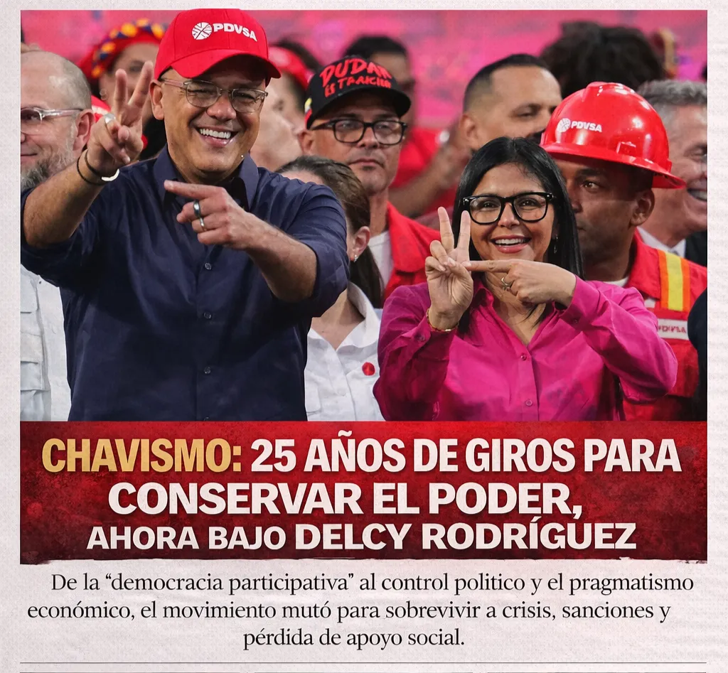 A 25 años de su llegada al gobierno, el chavismo aparece como un movimiento que ha variado su estrategia para sostenerse: primero con la promesa de participación, luego con la bandera socialista y, más tarde, con un giro pragmático frente a la contracción económica y el aislamiento. En 2026, bajo Delcy Rodríguez, la prioridad descrita por analistas citados por BBC Mundo se resume en un objetivo central: conservar el control político mientras se gestiona el costo interno y externo de esa permanencia.