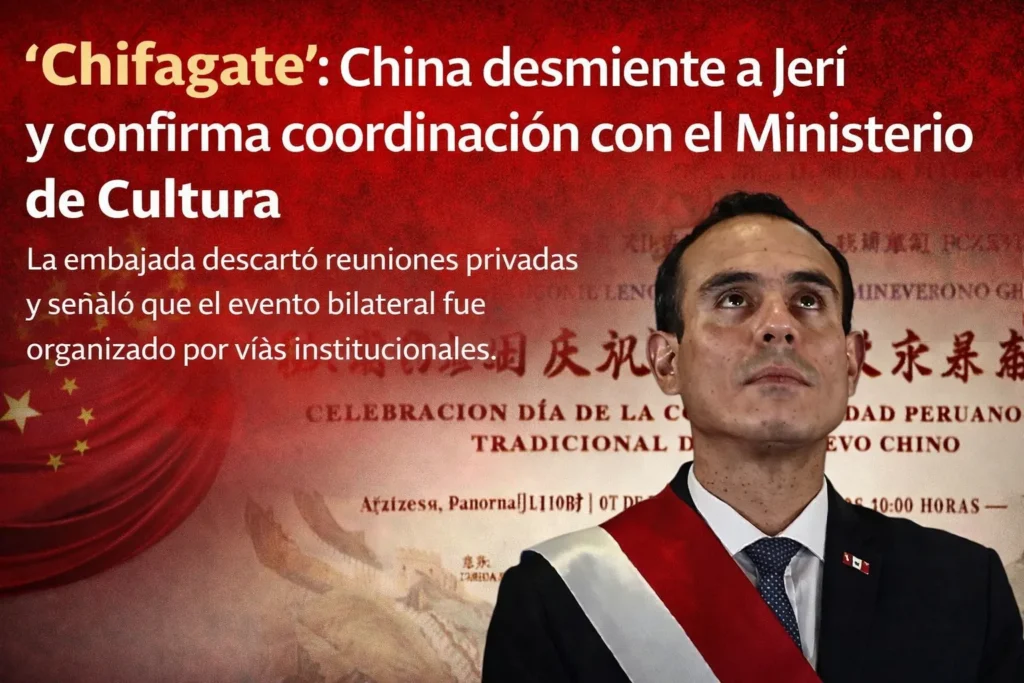 Con la aclaración oficial de la Embajada de China, queda establecido que la organización del Día de la Amistad Perú-China se realizó por vías institucionales con el Ministerio de Cultura. El caso continúa bajo escrutinio fiscal y político, mientras se precisan responsabilidades y se revisan las versiones ofrecidas por el Ejecutivo.