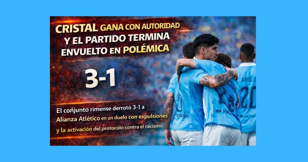 Sporting Cristal derrotó 3-1 a Alianza Atlético el 7 de marzo de 2026 en el estadio Alberto Gallardo de Lima, por la fecha 6 del Torneo Apertura de la Liga 1. El equipo dirigido por el cuadro rimense abrió el marcador con Luis Iberico, amplió con Irven Ávila y cerró el encuentro con Ian Wisdom, mientras que Franco Coronel descontó para el conjunto de Sullana. El encuentro también registró un incidente disciplinario en los minutos finales que llevó al árbitro a activar el protocolo contra actos de racismo, hecho que será evaluado por las autoridades del torneo.