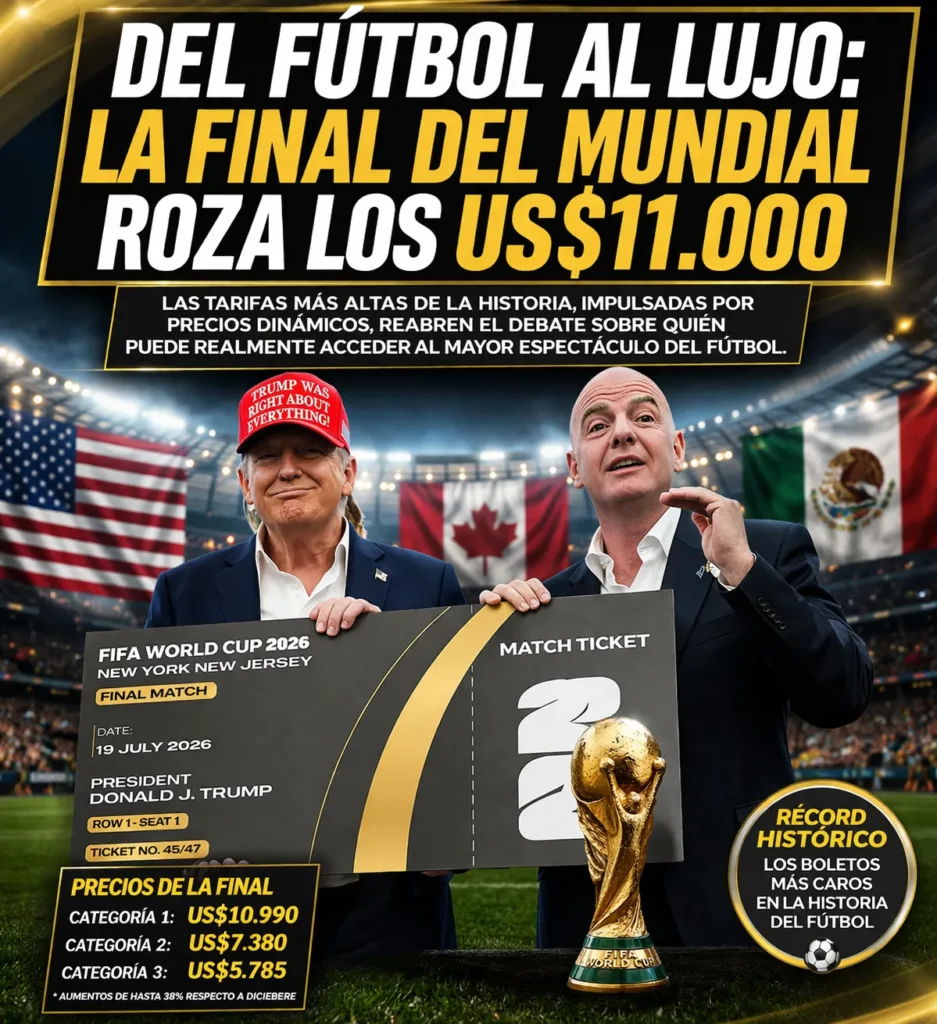 El dato central marca un hito: los boletos de admisión general para la final son los más caros registrados en la historia del fútbol. La categoría uno alcanza los US$10.990, muy por encima de los US$1.604 que costaban los asientos más caros en la final del Mundial de Qatar 2022.