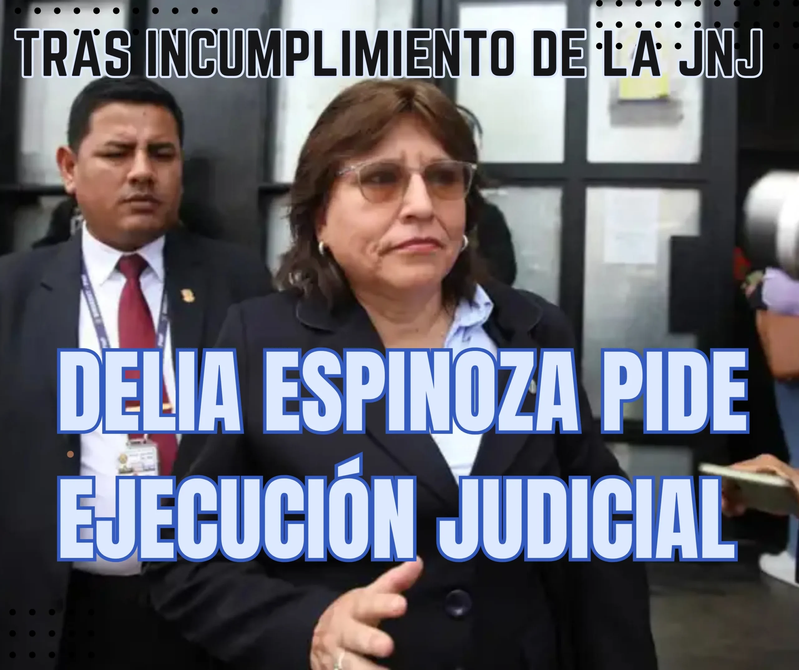 La suspendida fiscal de la Nación, Delia Espinoza, acudió la mañana del martes 25 de noviembre a la sede Alzamora Valdez del Poder Judicial, en Lima, con el objetivo de solicitar la ejecución de la medida cautelar que ordena su reposición inmediata al frente del Ministerio Público, luego de que venciera el plazo de dos días otorgado a la Junta Nacional de Justicia (JNJ) para cumplir la resolución judicial.