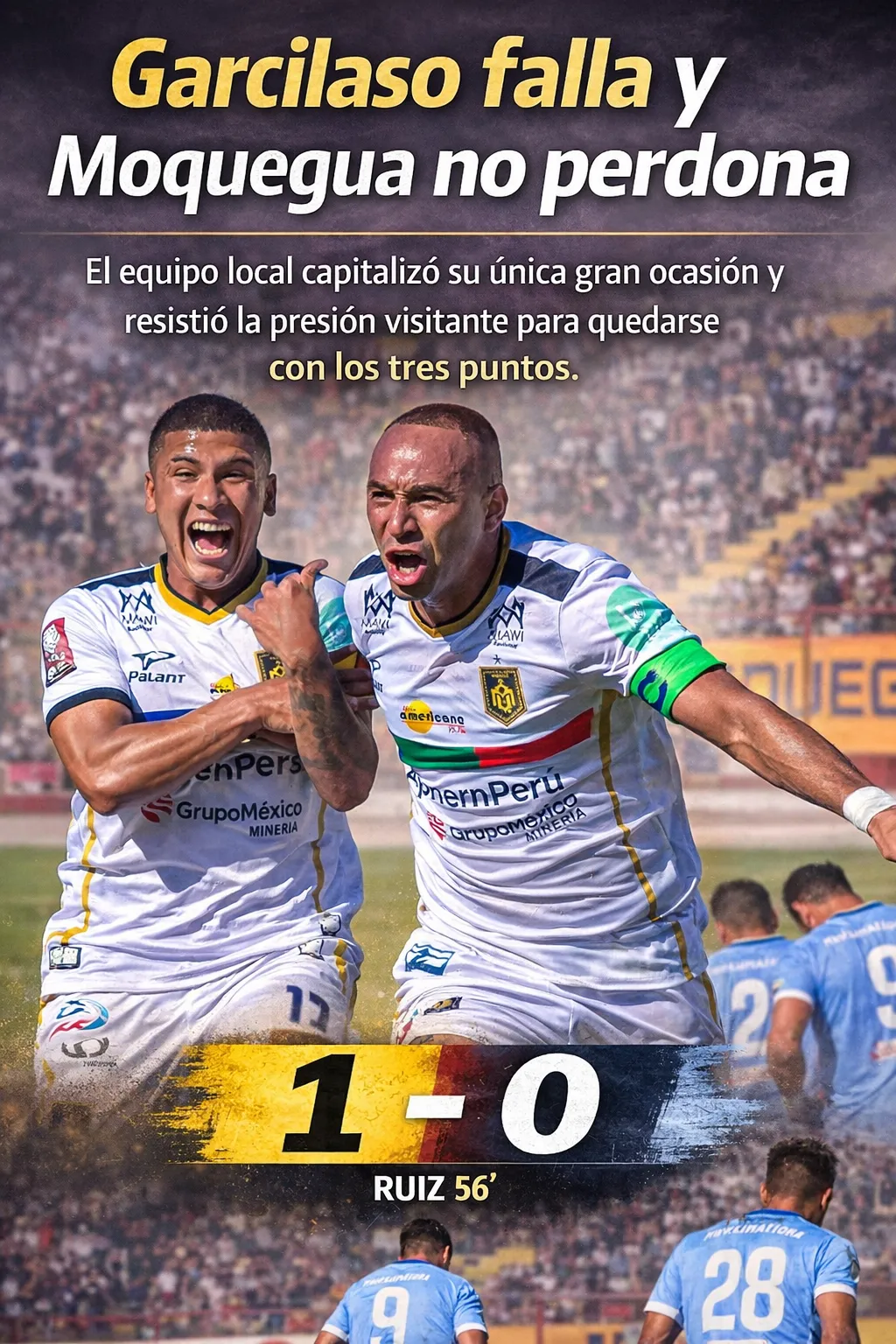 La victoria 1-0 de Deportivo Moquegua ante Deportivo Garcilaso, definida por el gol de Kevin Ruiz en el segundo tiempo, dejó como saldo tres puntos para el conjunto local y mantiene la competencia ajustada en la cuarta fecha del Torneo Apertura 2026.