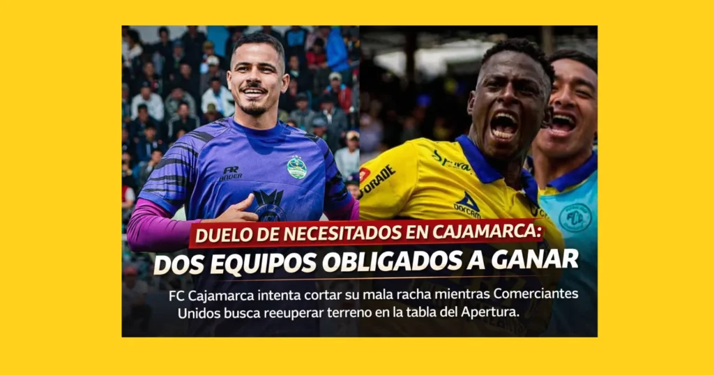 El enfrentamiento entre FC Cajamarca y Comerciantes Unidos abrirá la séptima jornada del Torneo Apertura 2026, en un duelo que enfrenta a dos equipos necesitados de resultados positivos. Mientras el conjunto local busca cortar su racha de derrotas, el cuadro visitante intentará sumar puntos fuera de casa para mantenerse competitivo en la tabla del campeonato peruano.