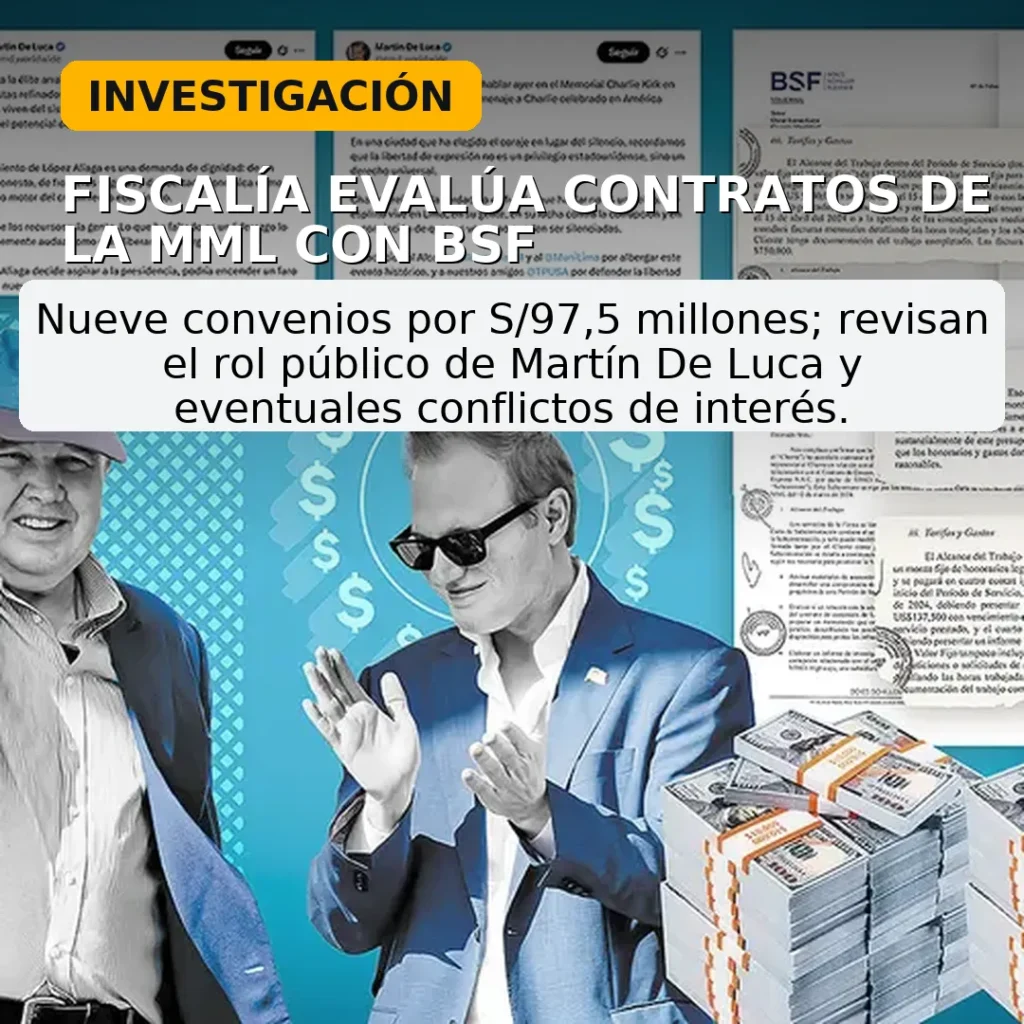 ¿Quién y qué? La Fiscalía Anticorrupción evalúa la denuncia presentada por los abogados Julio Arbizu y Ronald Gamarra contra el alcalde de Lima, Rafael López Aliaga, por la contratación reiterada del estudio estadounidense Boies Schiller Flexner (BSF), representado por Martín De Luca. ¿Cuándo y dónde? El caso ingresó a despacho fiscal en Lima y quedó a cargo del fiscal provincial Raúl Rivera Navarro. ¿Por qué y cómo? Los denunciantes sostienen que hubo contratación directa y sostenida por S/97,5 millones para litigar en EE. UU. y Francia por los peajes de Rutas de Lima y Línea Amarilla, mientras De Luca participaba en actos públicos y mensajes políticos a favor del alcalde.