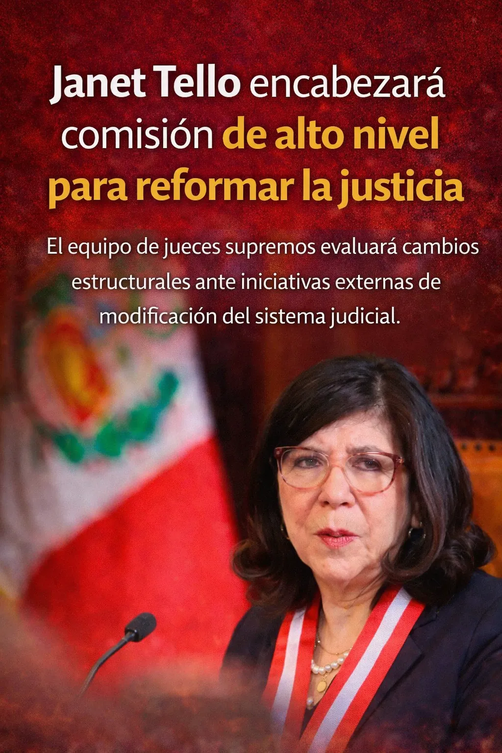 La presidenta del Poder Judicial, Janet Tello Gilardi, dispuso la conformación de una comisión de alto nivel encargada de analizar, evaluar e impulsar una reforma integral del sistema de justicia. La decisión fue adoptada por la Sala Plena de la Corte Suprema y formalizada mediante la resolución 000001-2026-SP-CS-PJ, que establece la participación de jueces supremos y el apoyo técnico del Gabinete de Asesores de la Presidencia del máximo órgano jurisdiccional.