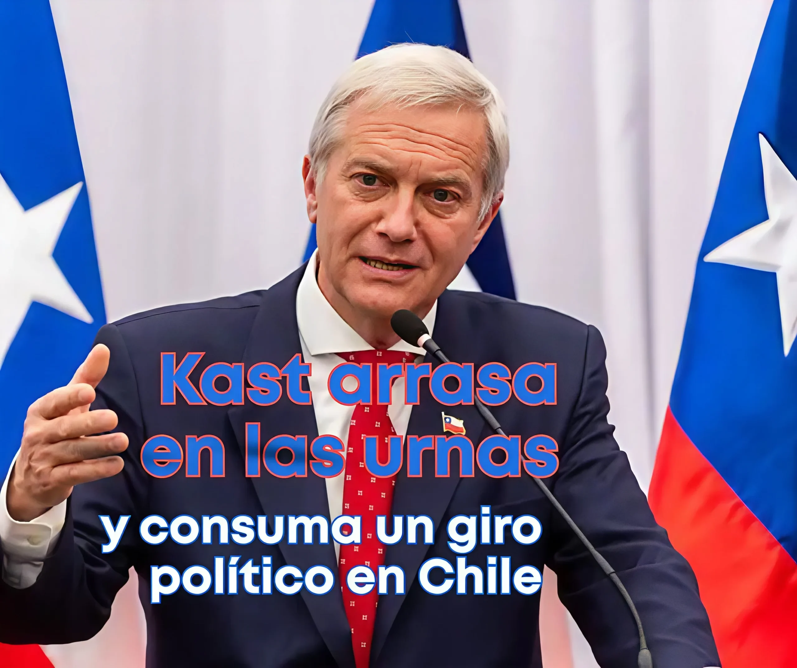 José Antonio Kast fue elegido presidente de Chile tras una victoria amplia y transversal en la segunda vuelta electoral, al obtener el 58,16 % de los votos frente al 41,84 % de la candidata oficialista Jeannette Jara, según los resultados oficiales del Servicio Electoral de Chile (Servel), con el 99,88 % de las mesas escrutadas. El resultado, calificado como irreversible por su entorno, marcó un quiebre político tras el gobierno de Gabriel Boric y consolidó un giro conservador en el país.
