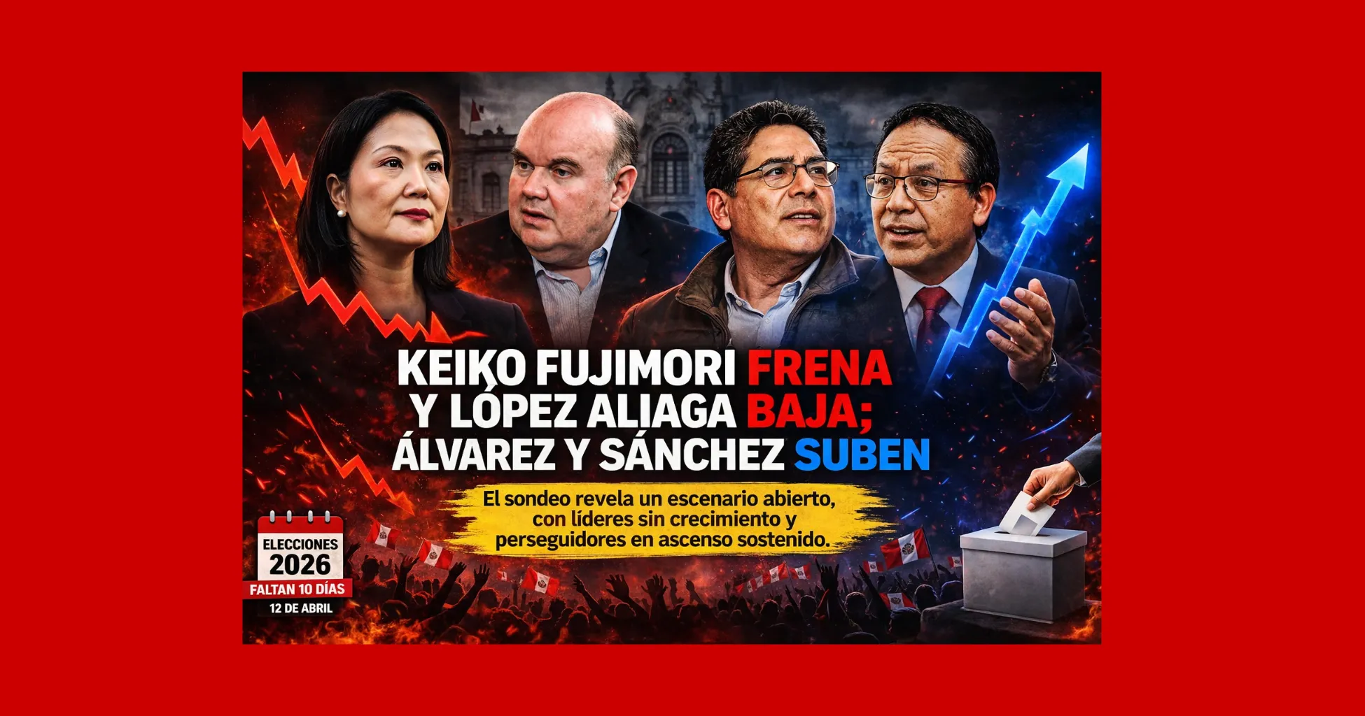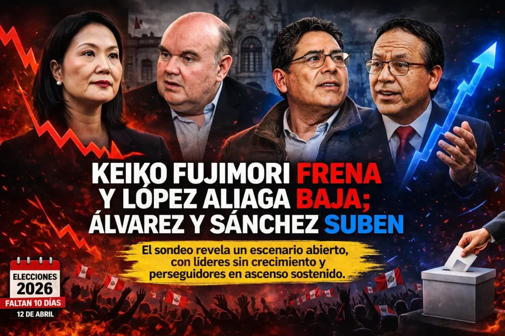 El proceso electoral entra en su fase decisiva con un escenario de alta fragmentación. Según el sondeo, Fujimori registra un 10% de intención de voto, mientras que López Aliaga alcanza el 8.7%, cifras que evidencian una falta de crecimiento respecto a mediciones previas.