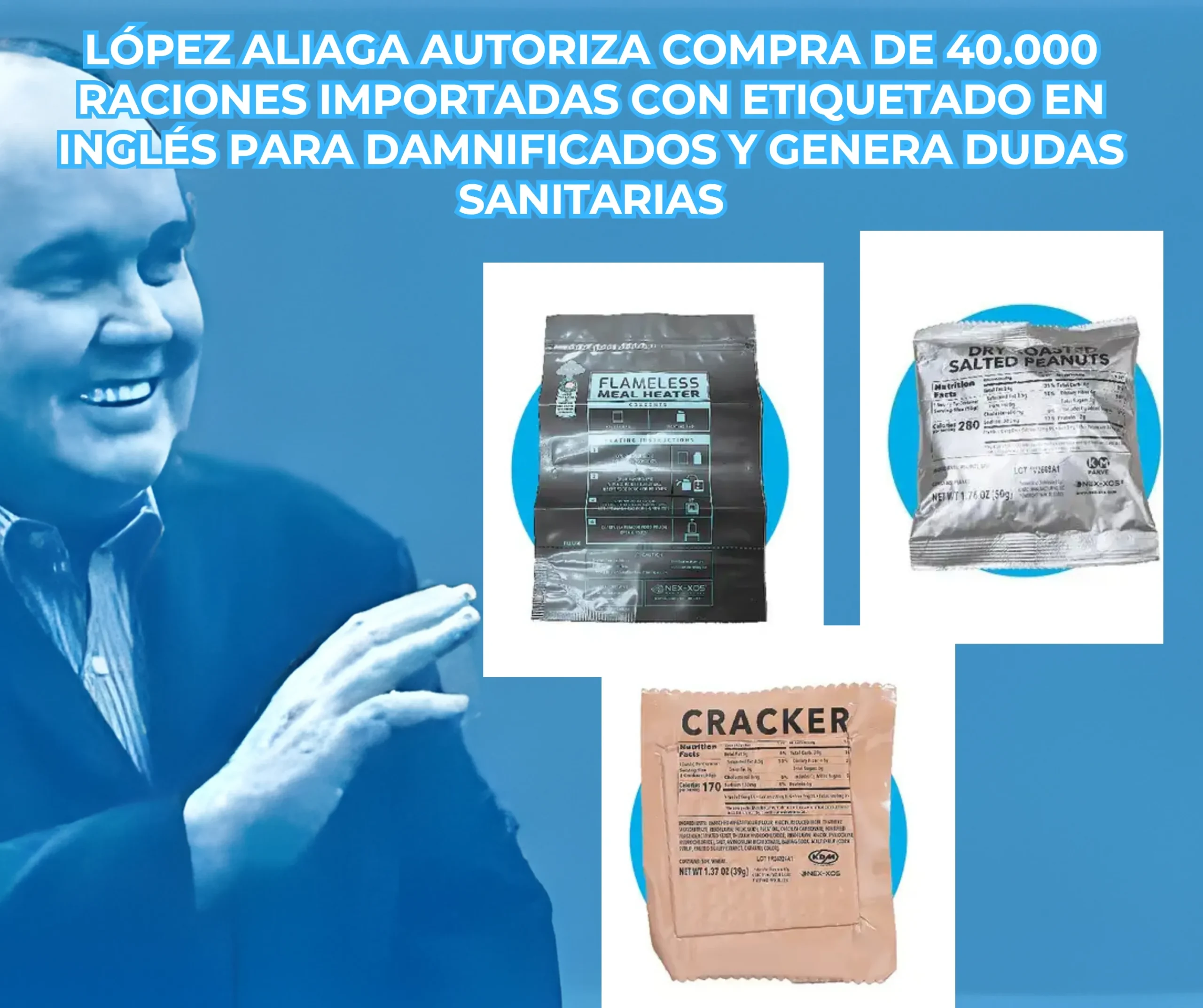 ¿Qué? Compra e importación de 40.000 raciones de emergencia con menús extranjeros para damnificados por lluvias.