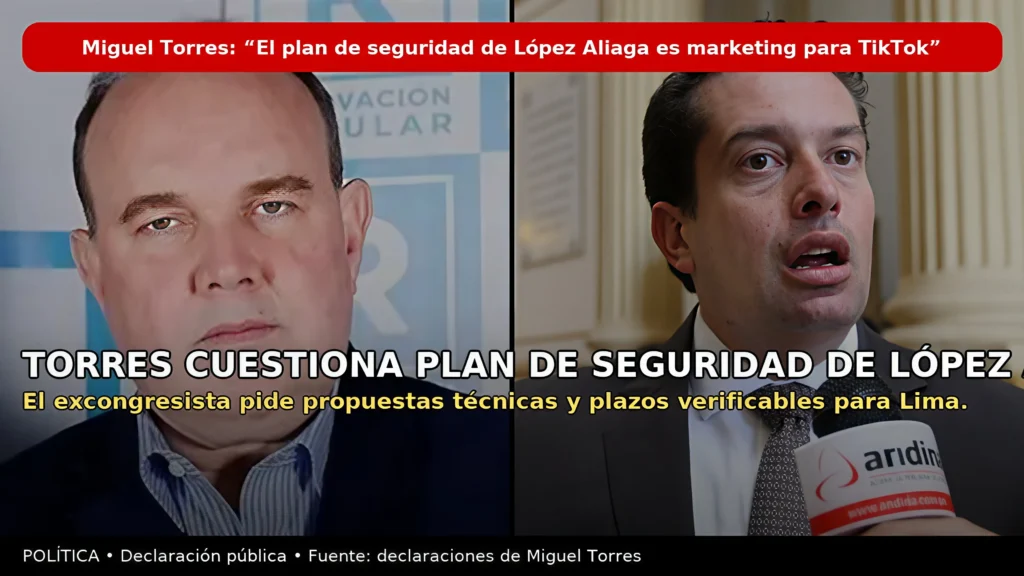 Las declaraciones de Miguel Torres y los descargos previos de Rafael López Aliaga reabren una disputa en la derecha y sitúan bajo verificación pública la consistencia técnica y financiera de las políticas municipales de seguridad y transporte. La evaluación ciudadana y de los órganos de control dependerá de la evidencia documental que sustente adquisiciones, cronogramas y metas medibles de impacto.