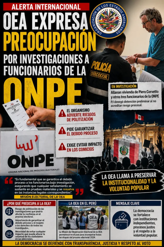 El pronunciamiento de la OEA introduce un elemento internacional en el desarrollo del proceso electoral peruano, reforzando la necesidad de equilibrio entre las investigaciones en curso y la garantía de transparencia, legalidad y continuidad institucional de los comicios.