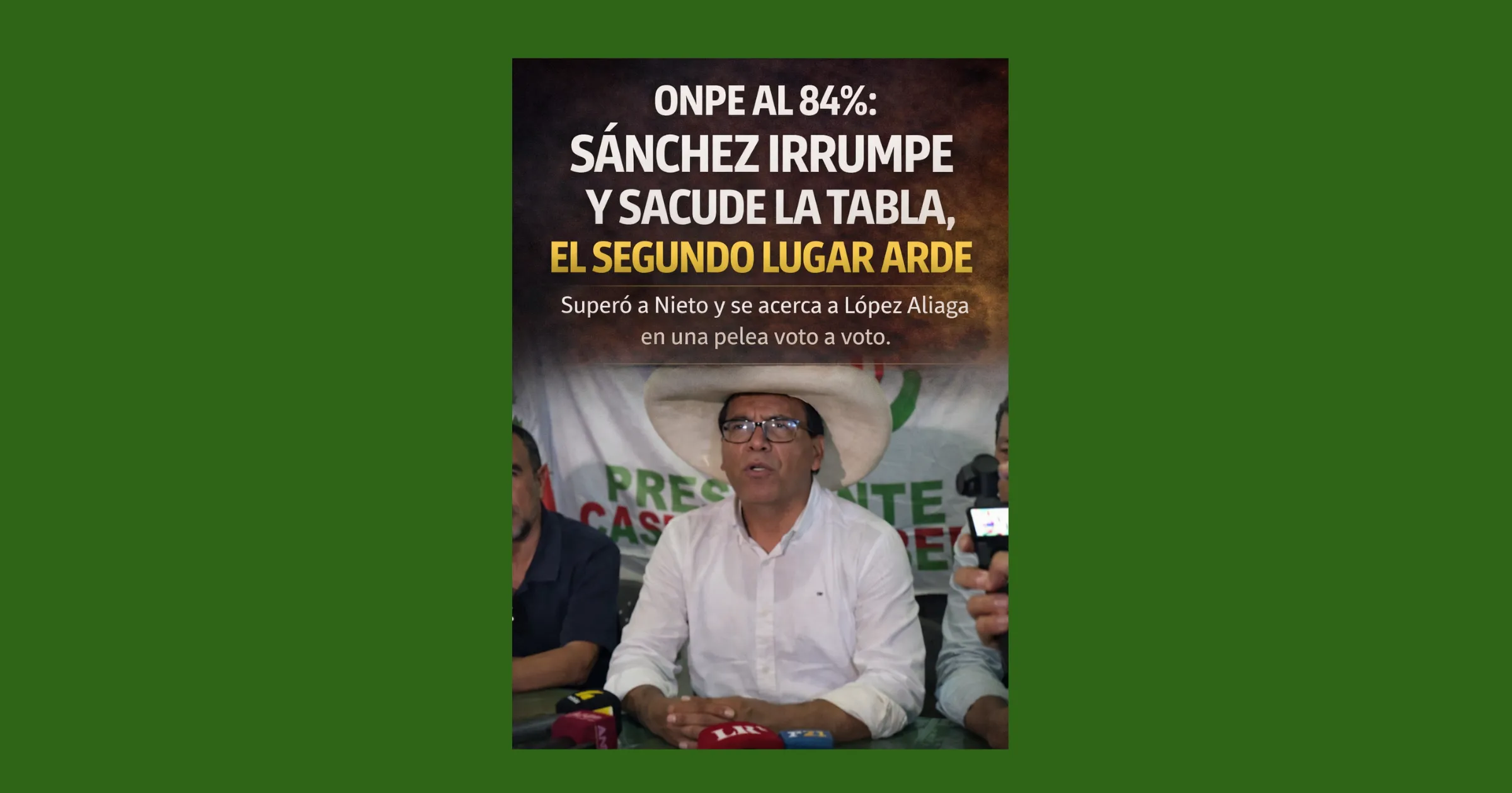 Al alcanzar el 75% de actas procesadas, Sánchez inició un repunte sostenido que lo llevó a desplazar a Jorge Nieto y acercarse a López Aliaga, situándose en una posición competitiva por el pase a la segunda vuelta.