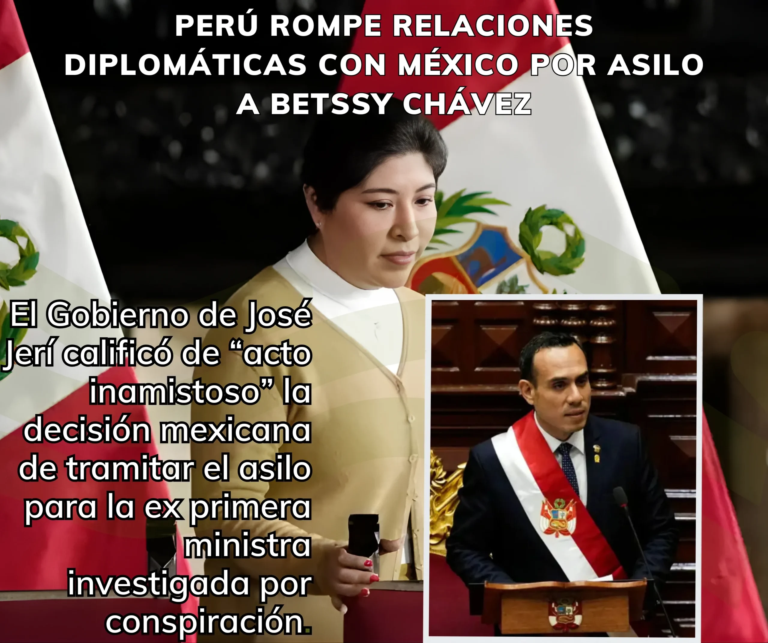 La decisión se produce tras conocerse que México inició un procedimiento para otorgar asilo a Betssy Chávez, ex jefa del Gabinete de Pedro Castillo, quien permanece en la sede diplomática mexicana en Lima. El canciller Hugo de Zela calificó el hecho como “acto inamistoso” y anunció la ruptura de relaciones.