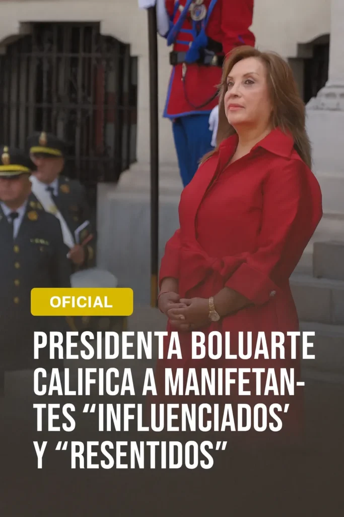 La jefa de Estado, Dina Boluarte, desautorizó las movilizaciones de la llamada Generación Z durante un acto oficial en Lima, el martes 30 de septiembre de 2025, al presentar al general Óscar Arriola como comandante general de la Policía Nacional del Perú (PNP). En su alocución señaló que los jóvenes que protestan están “manipulados” o “influenciados” e instó a no “dar mal ejemplo”. Las declaraciones ocurren en un contexto de marchas recurrentes y alta indecisión electoral, según el último informe del IEP.