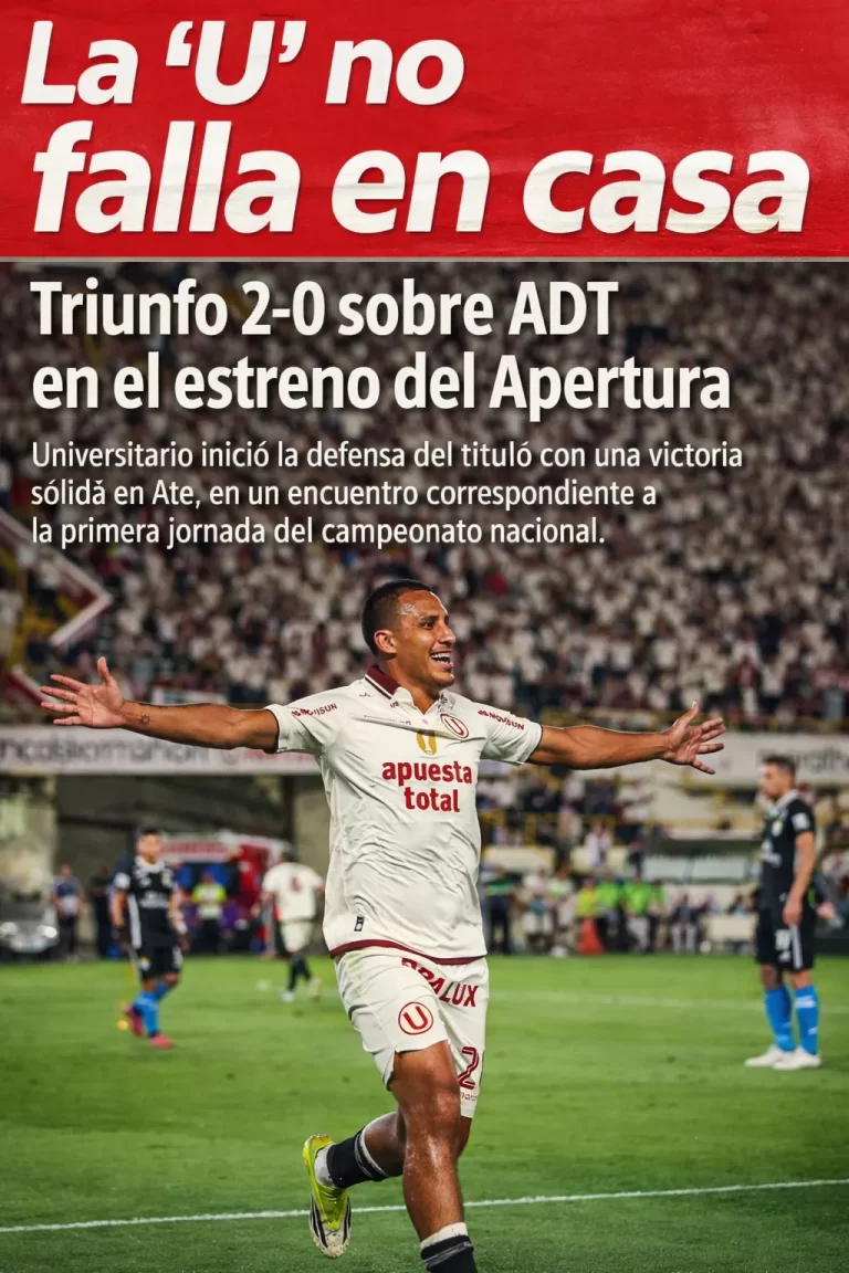 Universitario inició la defensa del título con una victoria sólida en Ate, en un encuentro correspondiente a la primera jornada del campeonato nacional. Universitario de Deportes inició su participación en el Torneo Apertura 2026 con una victoria por 2-0 frente…