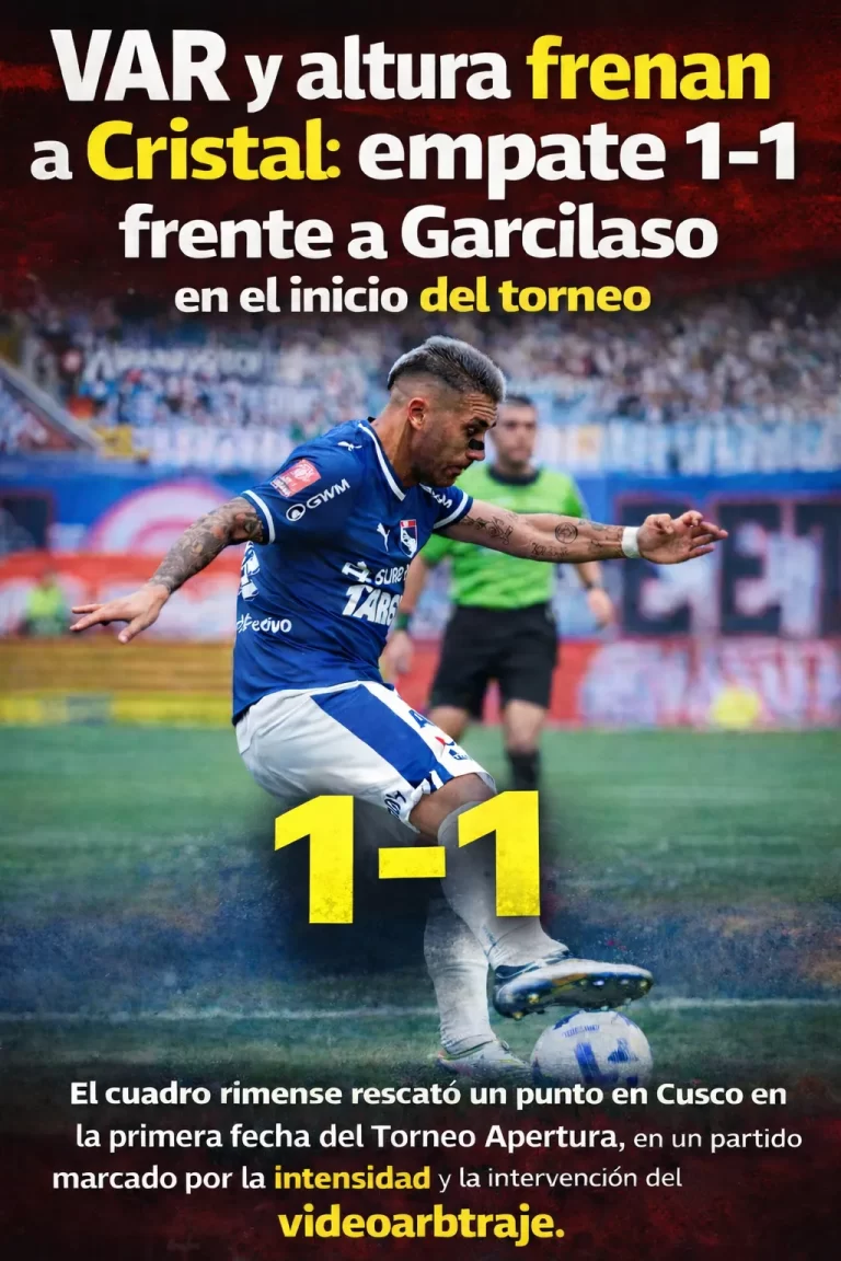 El cuadro rimense rescató un punto en Cusco en la primera fecha del Torneo Apertura, en un partido marcado por la intensidad y la intervención del videoarbitraje. Sporting Cristal igualó 1-1 con Deportivo Garcilaso este domingo 1 de febrero en…