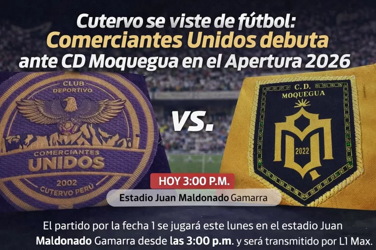 El partido por la fecha 1 se jugará este lunes en el estadio Juan Maldonado Gamarra desde las 3:00 p.m. y será transmitido por L1 Max. Comerciantes Unidos y CD Moquegua se enfrentan este lunes 2 de febrero por la…