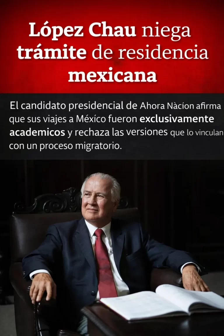 El candidato presidencial de Ahora Nación afirma que sus viajes a México fueron exclusivamente académicos y rechaza las versiones que lo vinculan con un proceso migratorio. El candidato presidencial Alfonso López Chau negó este lunes en Chimbote haber iniciado un…