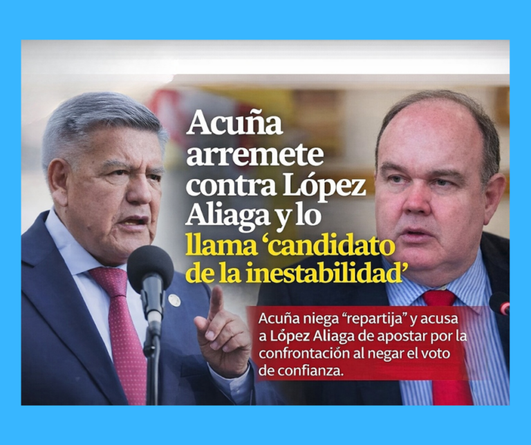 El líder de APP rechaza acusaciones de “repartija” en el gabinete Miralles y responde con dureza a López Aliaga, quien anuncia que no dará el voto de confianza y evalúa censura. El dirigente de Alianza Para el Progreso (APP), César…
