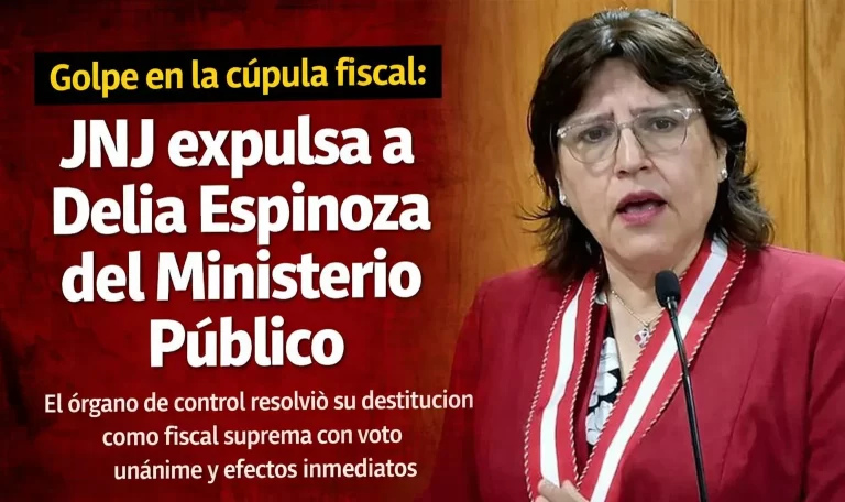 El órgano de control resolvió su destitución como fiscal suprema con voto unánime y efectos inmediatos. Junta Nacional de Justicia destituye a Delia Espinoza como fiscal suprema La Junta Nacional de Justicia (JNJ) acordó la destitución de Delia Espinoza del…