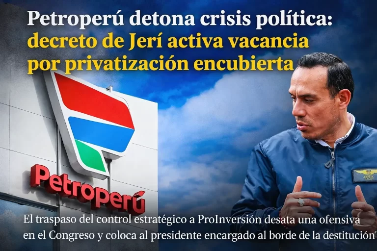 El traspaso del control estratégico a ProInversión desata una ofensiva en el Congreso y coloca al presidente encargado al borde de la destitución. El Congreso de la República se encamina a debatir una moción de vacancia presidencial contra el presidente…