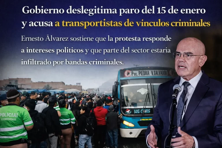 Ernesto Álvarez sostiene que la protesta responde a intereses políticos y que parte del sector estaría infiltrado por bandas criminales. El presidente del Consejo de Ministros, Ernesto Álvarez, afirmó que el paro de transportistas convocado para el 15 de enero…