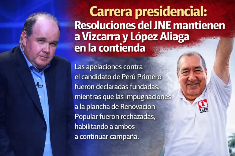 Las apelaciones contra el candidato de Perú Primero fueron declaradas fundadas, mientras que las impugnaciones a la plancha de Renovación Popular fueron rechazadas, habilitando a ambos a continuar campaña. El Pleno del Jurado Nacional de Elecciones (JNE) confirmó que Mario…