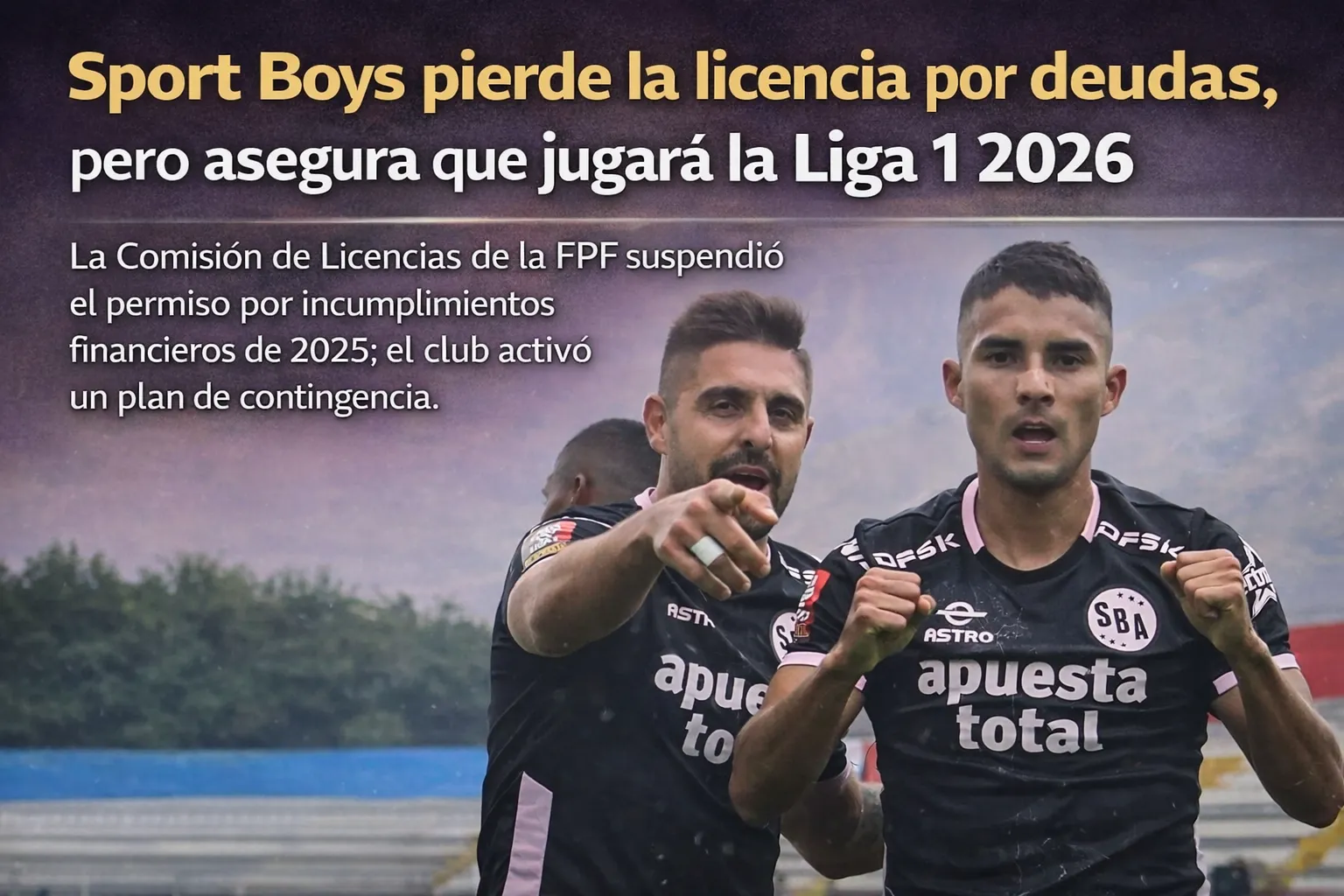 A diez días del inicio del campeonato, Sport Boys enfrenta un proceso de regularización financiera tras la suspensión de su licencia, mientras mantiene su planificación deportiva y ratifica su intención de competir en la Liga 1 2026, a la espera de que la autoridad correspondiente levante la medida una vez atendidos los compromisos pendientes.