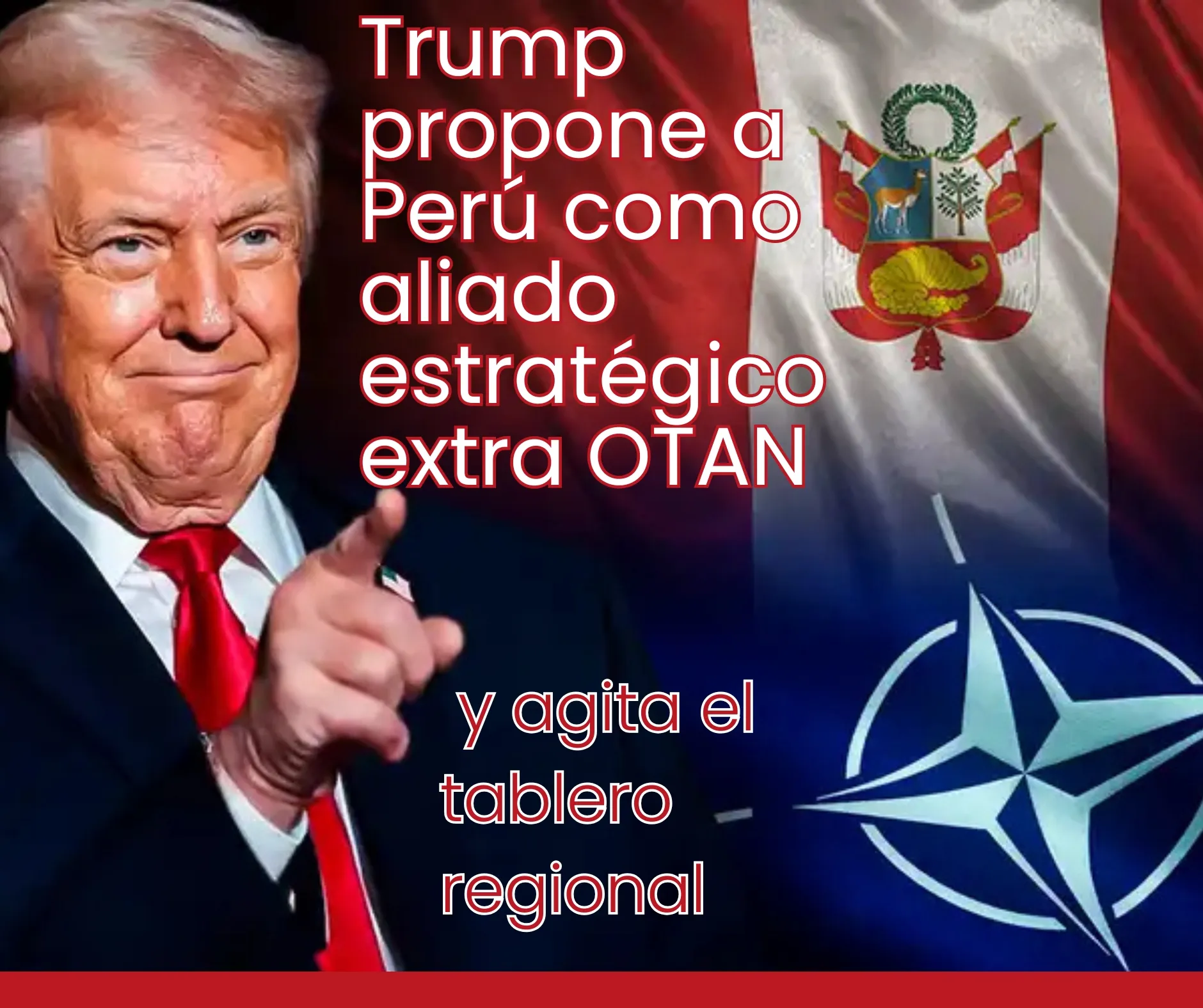 El presidente de Estados Unidos, Donald Trump, propuso que Perú sea considerado aliado estratégico extra OTAN, una categoría utilizada por Washington para fortalecer la cooperación militar y de seguridad con países que no forman parte de la alianza atlántica. La iniciativa fue abordada en recientes encuentros diplomáticos entre ambos gobiernos y se enmarca en el análisis de la nueva Estrategia de Seguridad Nacional estadounidense, presentada por la actual administración.