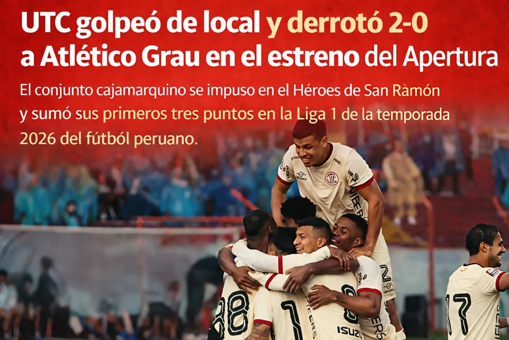 UTC abrió el Torneo Apertura 2026 con una victoria 2-0 ante Atlético Grau en Cajamarca, sumando sus primeros puntos en la Liga 1. El resultado deja al conjunto local con un inicio favorable, mientras el campeonato peruano inicia oficialmente una nueva temporada.