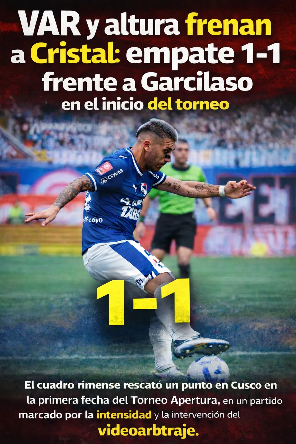 Sporting Cristal igualó 1-1 con Deportivo Garcilaso este domingo 1 de febrero en el estadio Inca Garcilaso de la Vega, en Cusco, por la primera fecha del Torneo Apertura de la Liga 1 Te Apuesto 2026, en un encuentro disputado, con alternancia en el dominio y decisiones arbitrales determinantes.