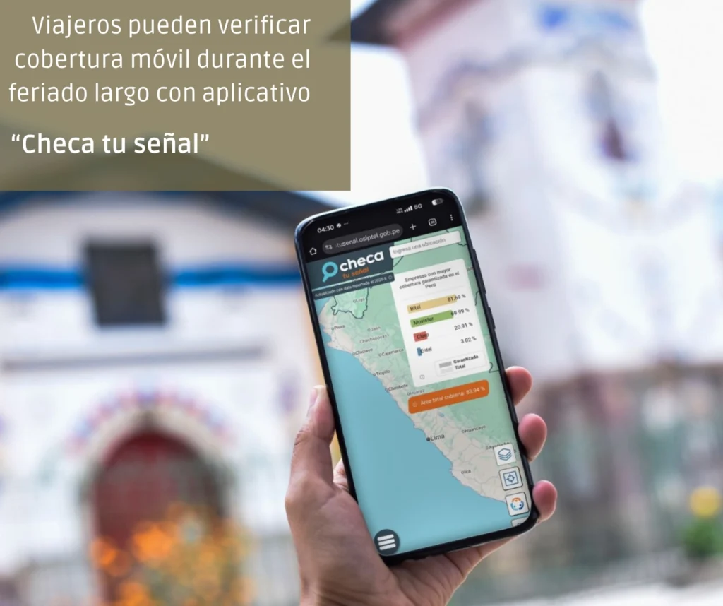 El Organismo Supervisor de Inversión Privada en Telecomunicaciones (Osiptel) informó que los usuarios que planean viajar este fin de semana largo pueden consultar, mediante el aplicativo gratuito Checa tu señal, si su destino cuenta con cobertura móvil garantizada. La plataforma permite visualizar la disponibilidad de servicios 5G, 4G, 3G y 2G ofrecidos por cada operador a nivel nacional.